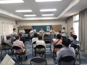 清江地域「陽だまりの会」に行ってきました。今回はボランティアグループ「みんなでウクレレ歌おう会」の皆さんに来ていただき、ウクレレの演奏、歌、手遊びなどを楽しみました。曲目は「幸せなら手をたたこう」「ヤングマン」「なんとなく なんとなく」などの懐メロや童謡唱歌。和気あいあいとした楽しい時間でした♪