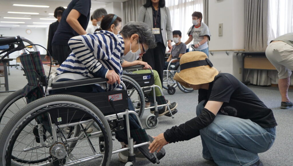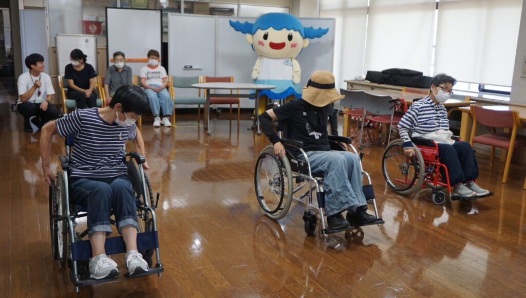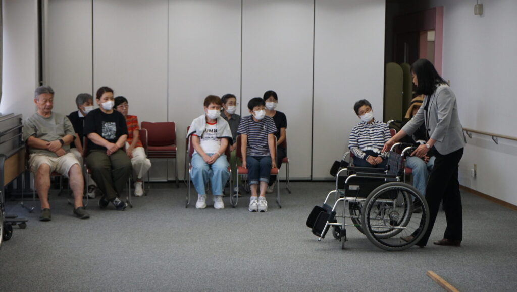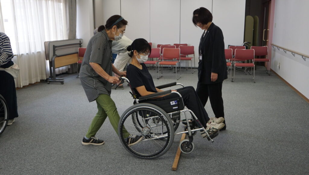 日本ケアフィット共育機構の先生に、車いすの操作について学びました。