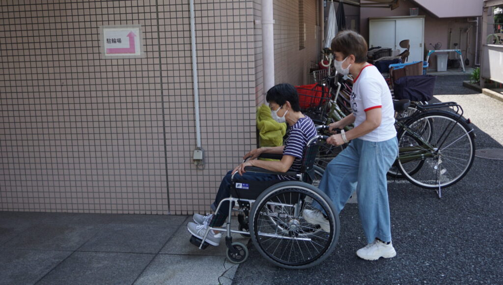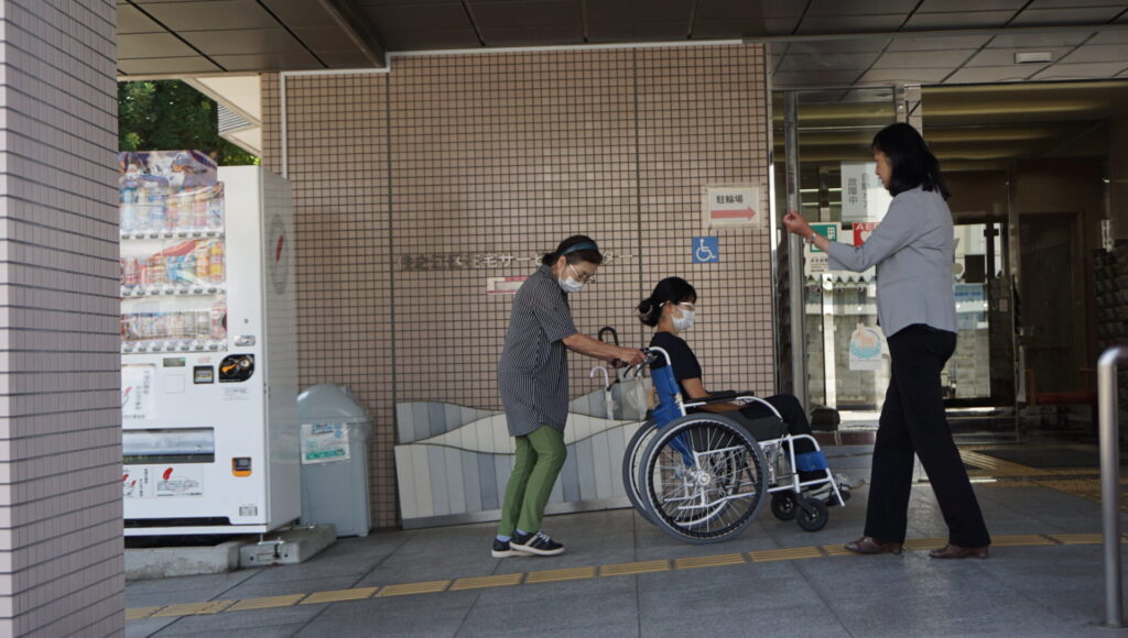 歩いていると気が付かないような、よくあるわずかな段差でも、車いすだと力が要ります。