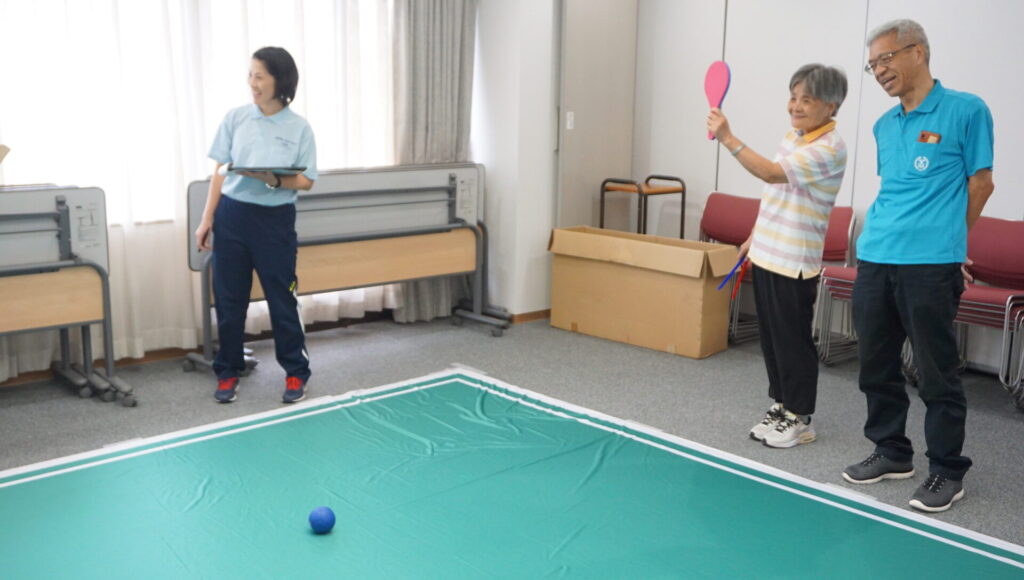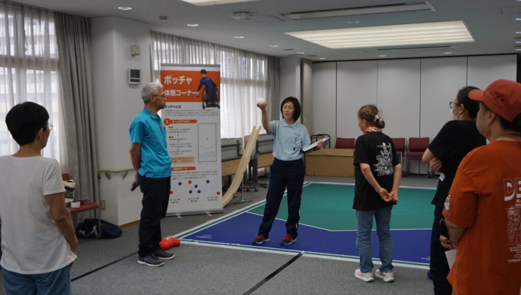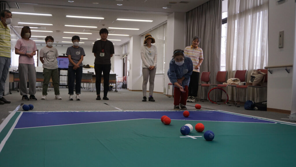 後半は、大阪市障害者福祉・スポーツ協会の先生にボッチャを教えてもらいました。