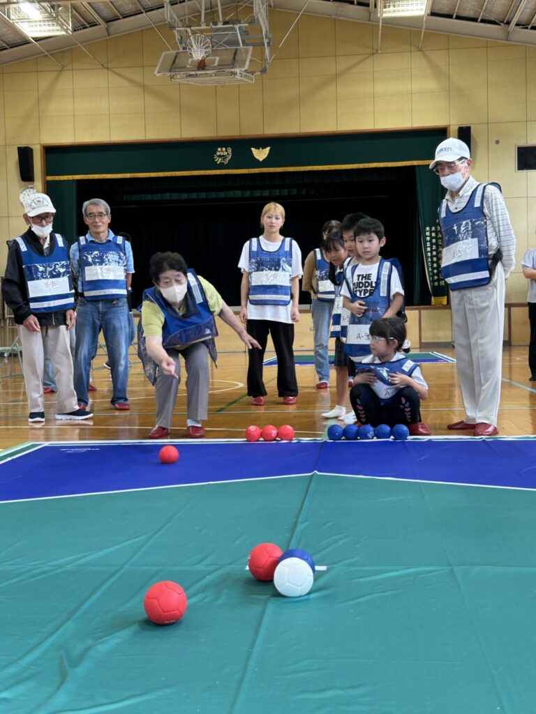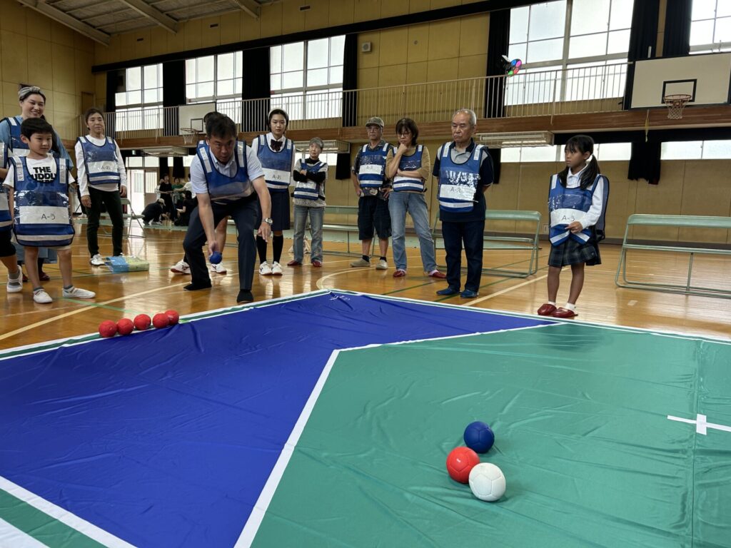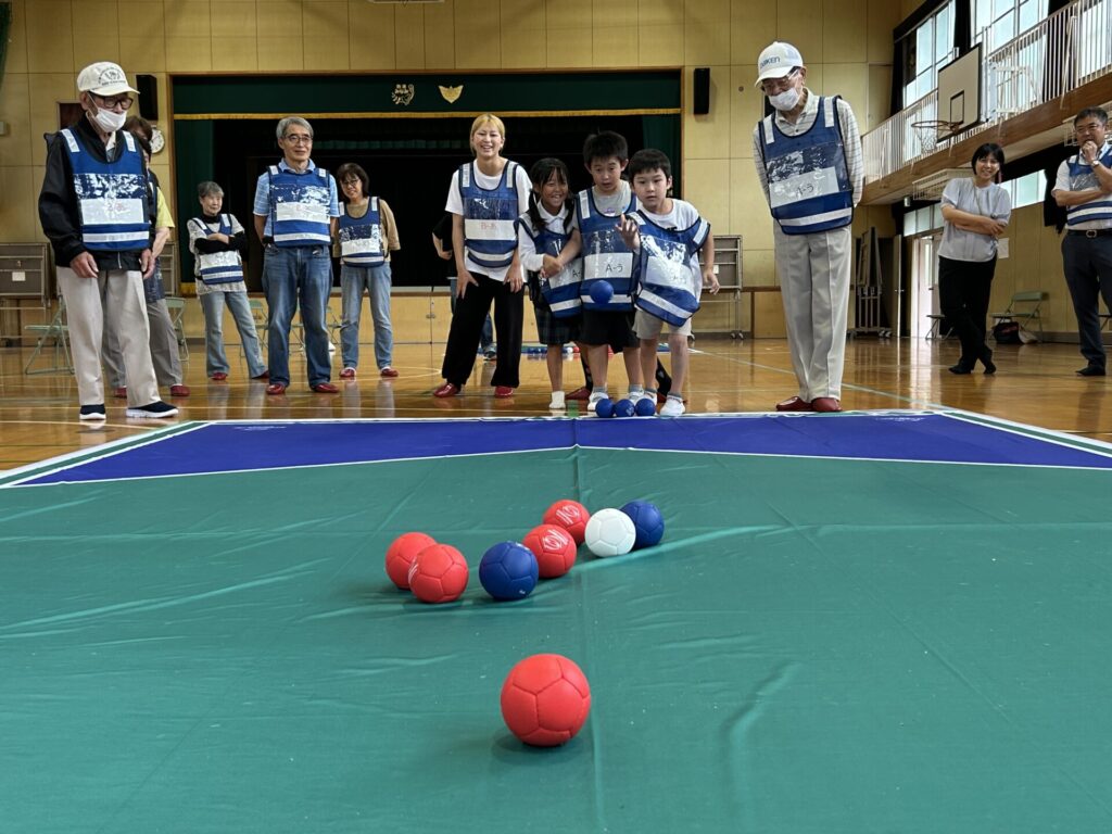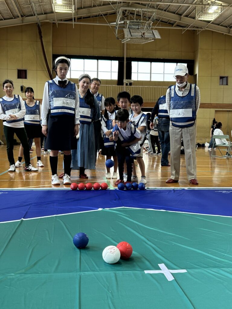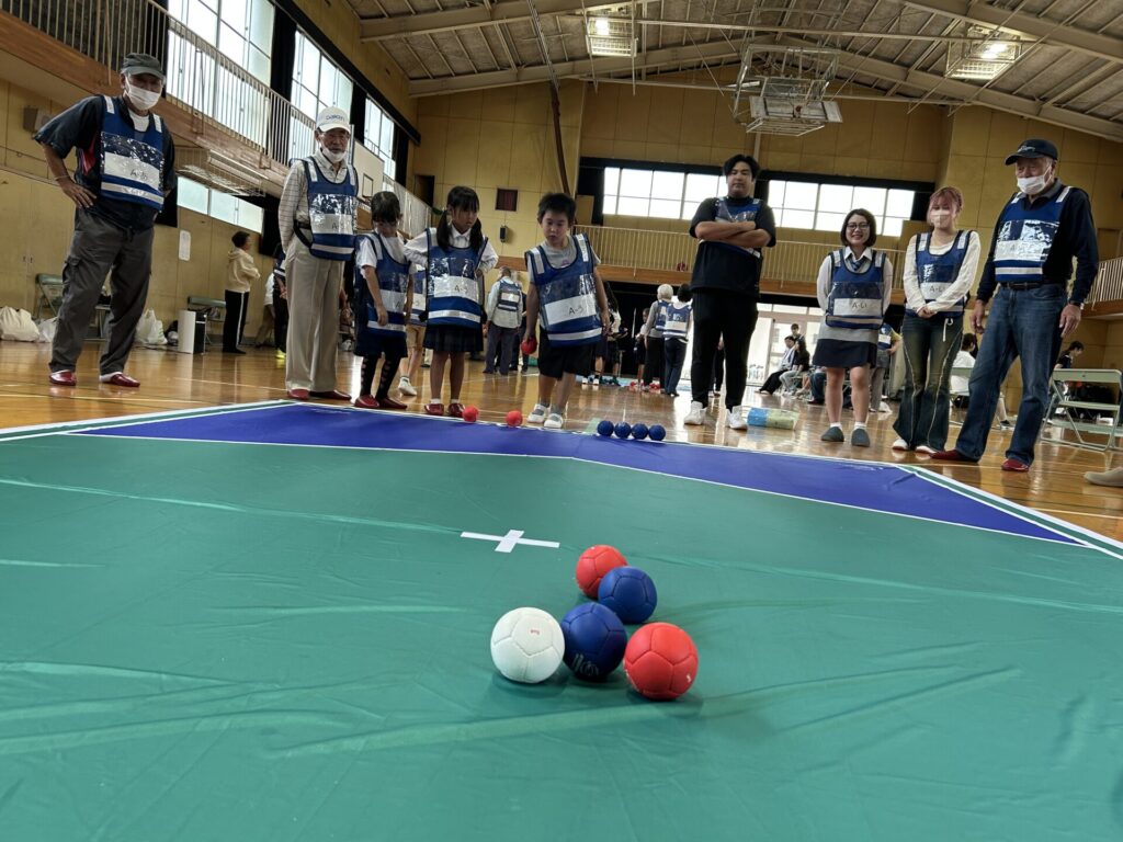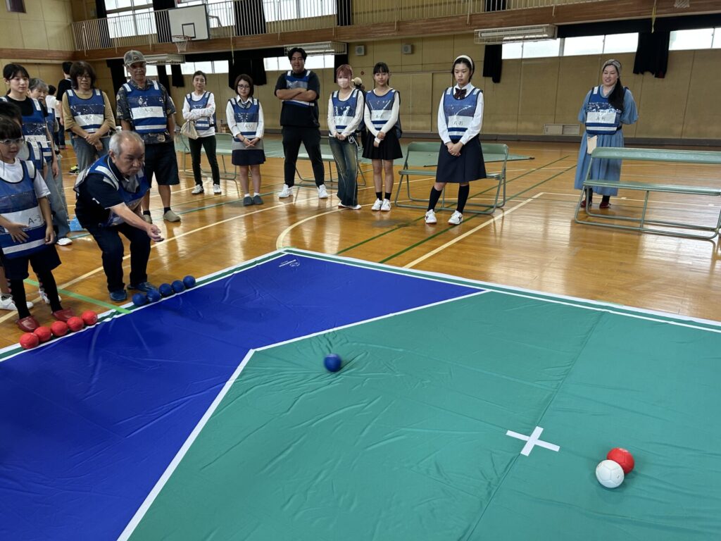 第2層生活支援コーディネーターの楊です。10月4日(土)咲州みなみ小中一貫校の体育館において「ボッチャとモルックの体験~地域交流大会」が開催されました!