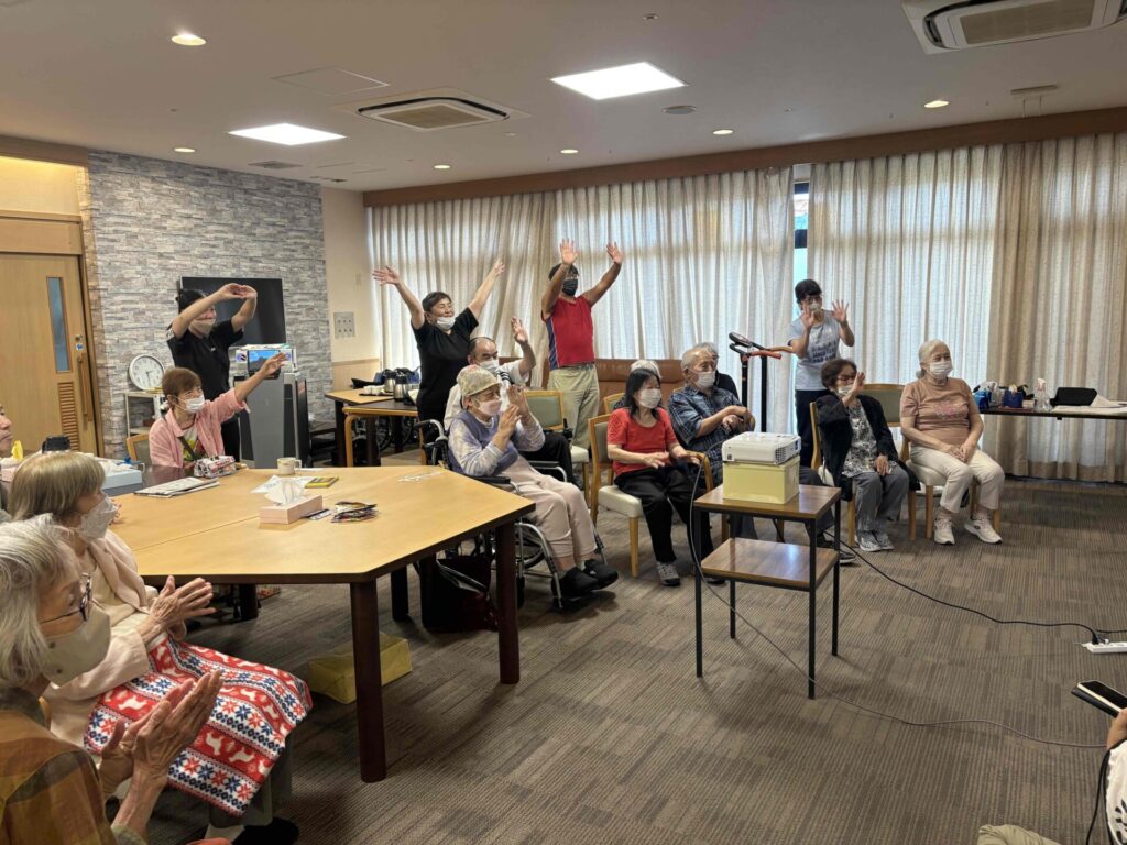 それでも、施設のスタッフの皆さんが場を盛り上げてくださり、子どもたちの映像に合わせて一緒にダンスをしていただくなど、工夫して場をつないでくださいました。