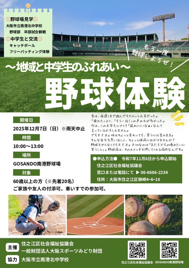 もう一度野球しようぜ!~地域と中学生とふれあい~「野球体験」 実施します!