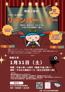 2026.01.13 イベント こども 映画上映会「リメンバー・ミー」開催します! 家族で、友だちと、そしておひとりでも。 音楽と物語を通して、心があたたかくなる時間を一緒に過ごしませんか。 当日は子ども食堂・子育てサロン等のパネル展示もあります。 どなたでも参加OK、参加費無料です。 日時:令和8年1月31日(土) 午後2時~4時半(会場:午後1時~) 場所:すみのえ舞昆ホール(住之江区役所2階) ※申込不要 地域でつながるきっかけに、ぜひお越しください♪