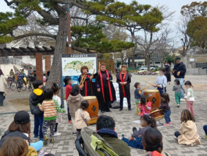 紙芝居や和太鼓演奏にたくさんの子どもたちや大人が集まり、楽しそうに聞き入っている様子をみることができました。また和太鼓体験では子どもたちがたくさん集まっていました!