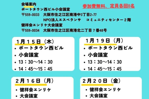 お知らせ一覧 全て 高齢者 こども ボランティア 講座 イベント 活動レポート 2025.12.17 スマホ講座を開催します!「生成AIについて学びましょう」 講座 2025.12.15 南港ラジオ体操コスモ~冬バージョン 高齢者 2025.12.03 「にぎわいフェスタin汐かけ横丁」を開催します! イベント ボランティア こども 高齢者 2025.11.28 N-LOUNGEで「ボッチャ体験会」を開催しました! イベント 高齢者 2025.11.25 「認知症世界の歩き方」ワークショップを開催しました! 講座 高齢者 2025.11.18 たくさんのご応募ありがとうございました!ボッチャ大会抽選結果のご案内 イベント 2025.11.17 スマホ講座を開催します! 講座 2025.11.12 「ボッチャ体験会」を開催しました!! イベント 高齢者 2025.11.07 もう一度野球しようぜ!~地域と中学生とふれあい~「野球体験」 実施します! イベント 高齢者 1 / 7123...